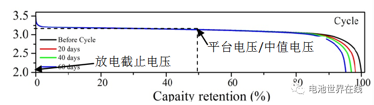 中值电压是电池容量一半时对应的电压值,对于平台比较明显的材料,如磷酸铁锂和钛酸锂等,中值电压一般就是平台电压。